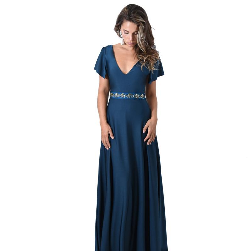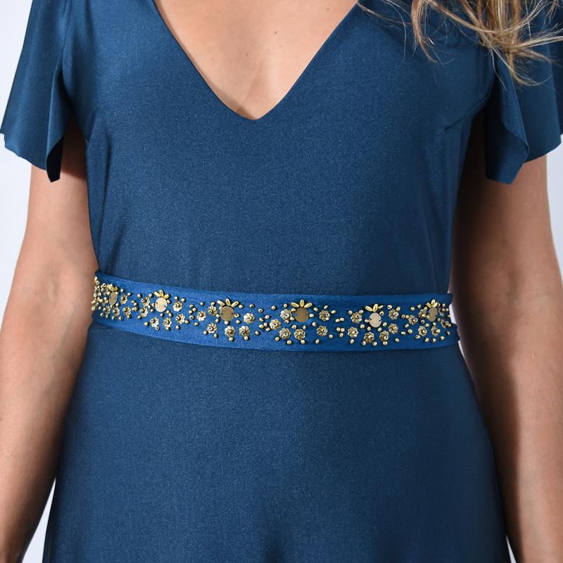 Cinturon Argel Petroleo Lycra Bordado A Mano Maria Paskaro