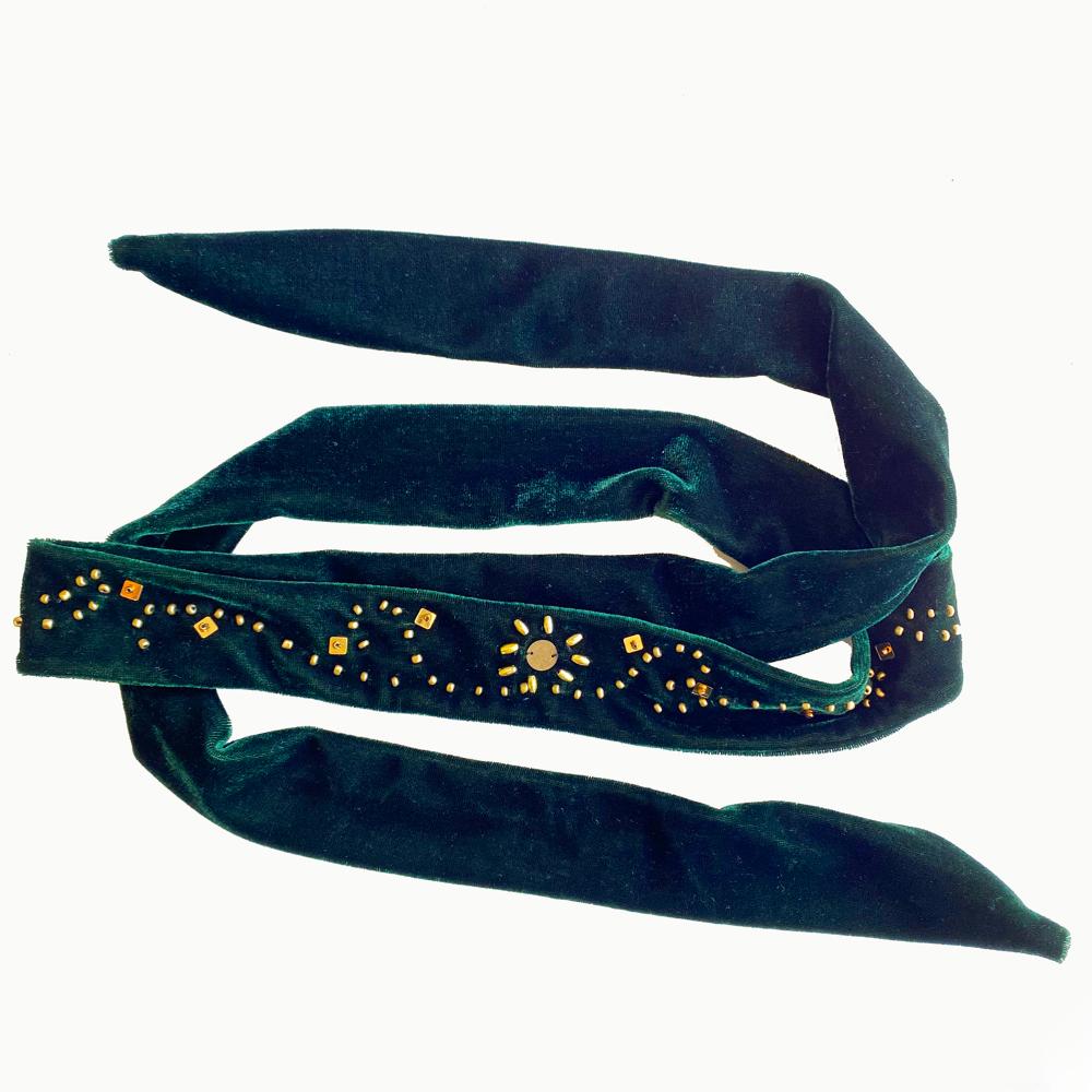 Cinturon Argel Verde 3 Terciopelo Bordado A Mano Maria Paskaro