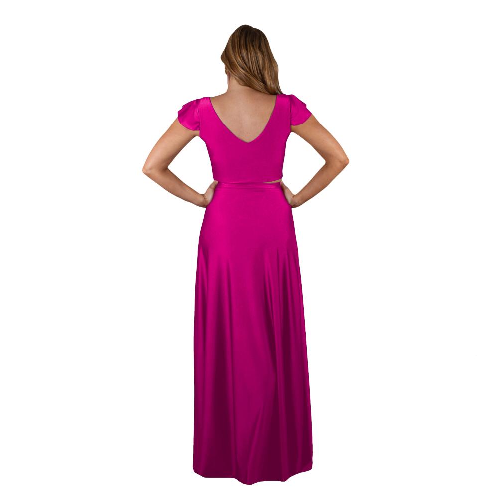 Conjunto Lima Magenta Lycra Dupont Falda Lazo Maria Paskaro