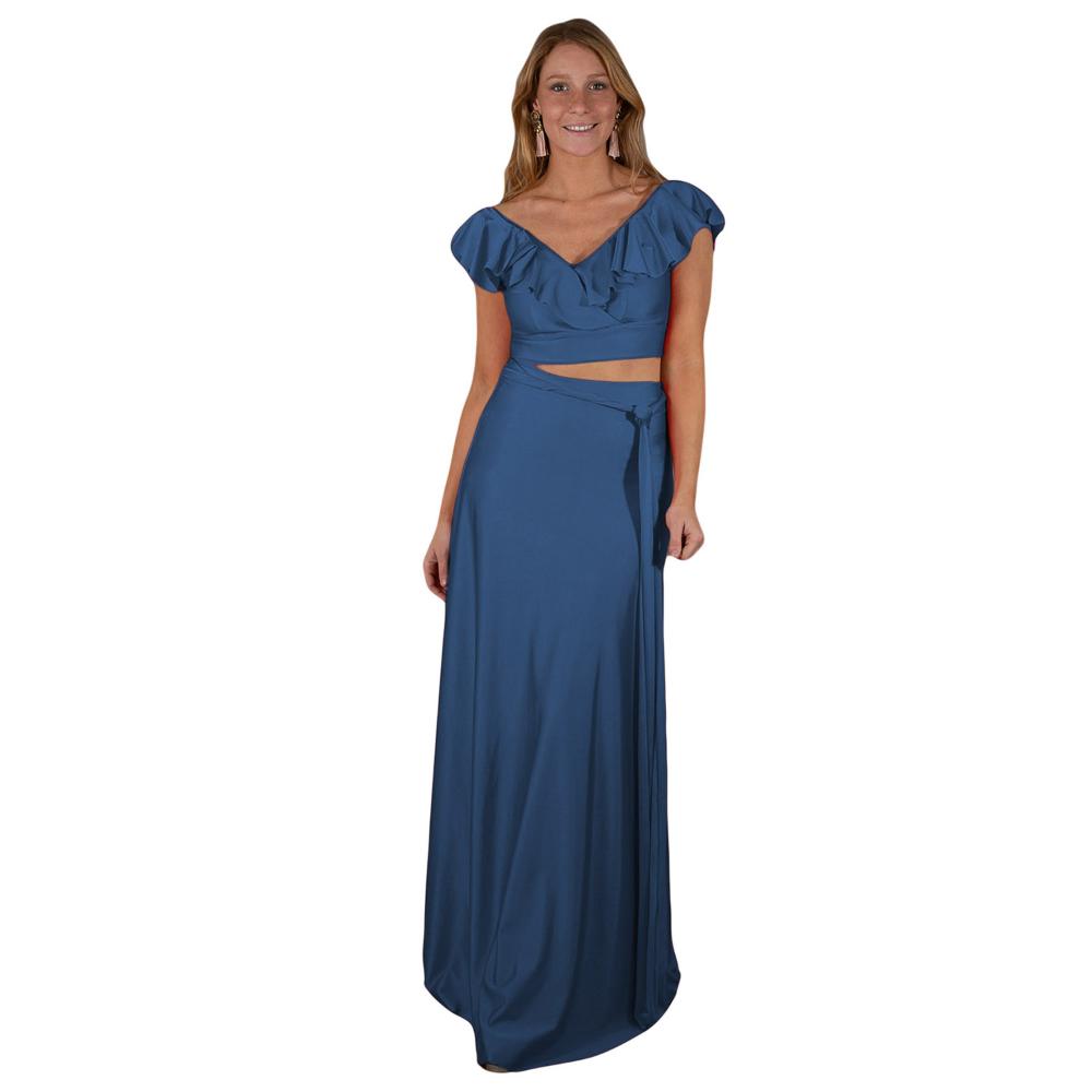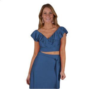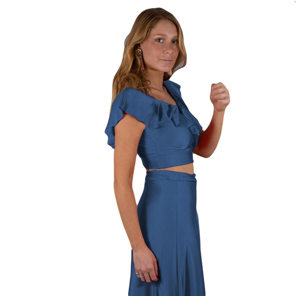 Conjunto Marken Petroleo Lycra Falda Lazo Maria Paskaro