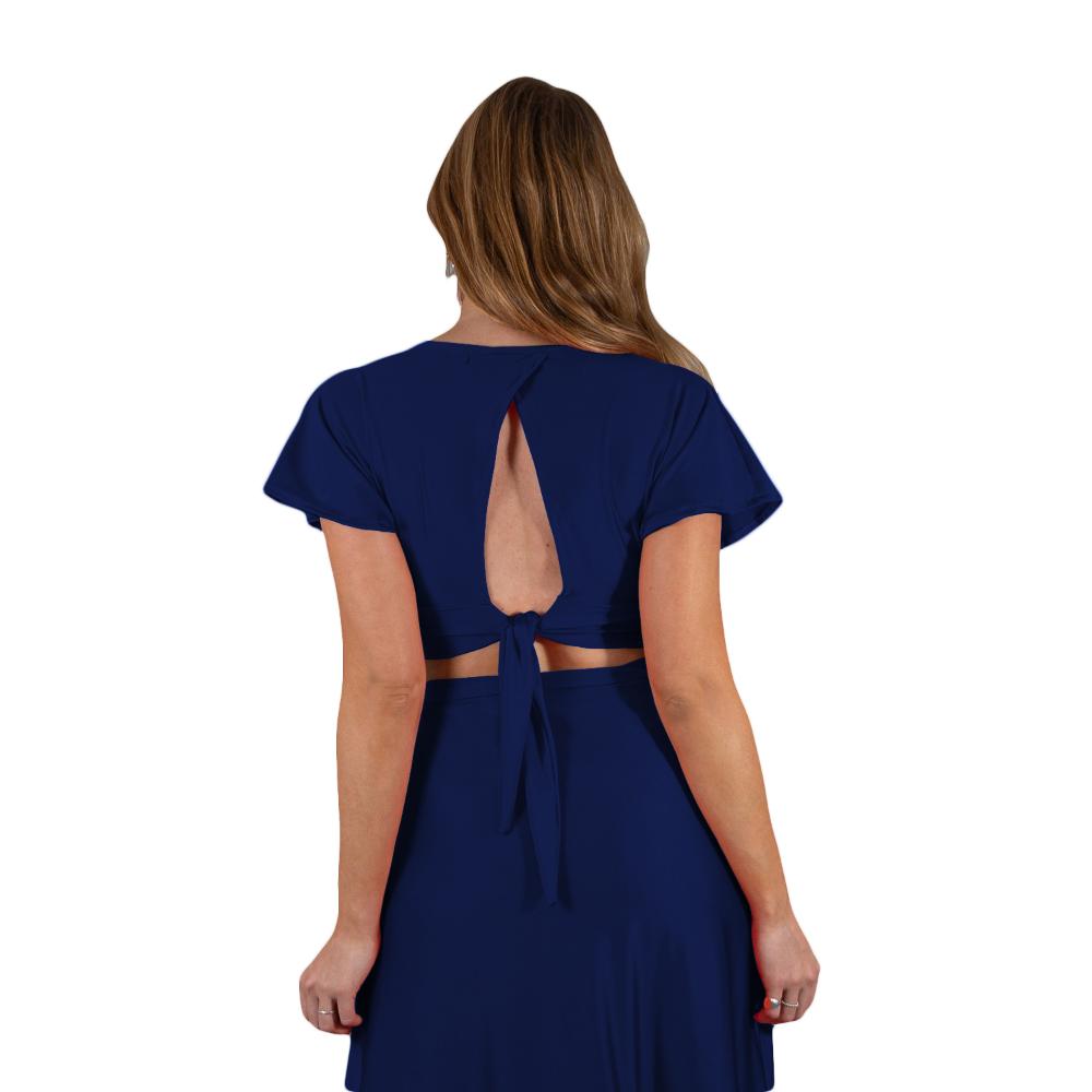 Conjunto Roma Azul Marino Lycra Falda Lazo Maria Paskaro