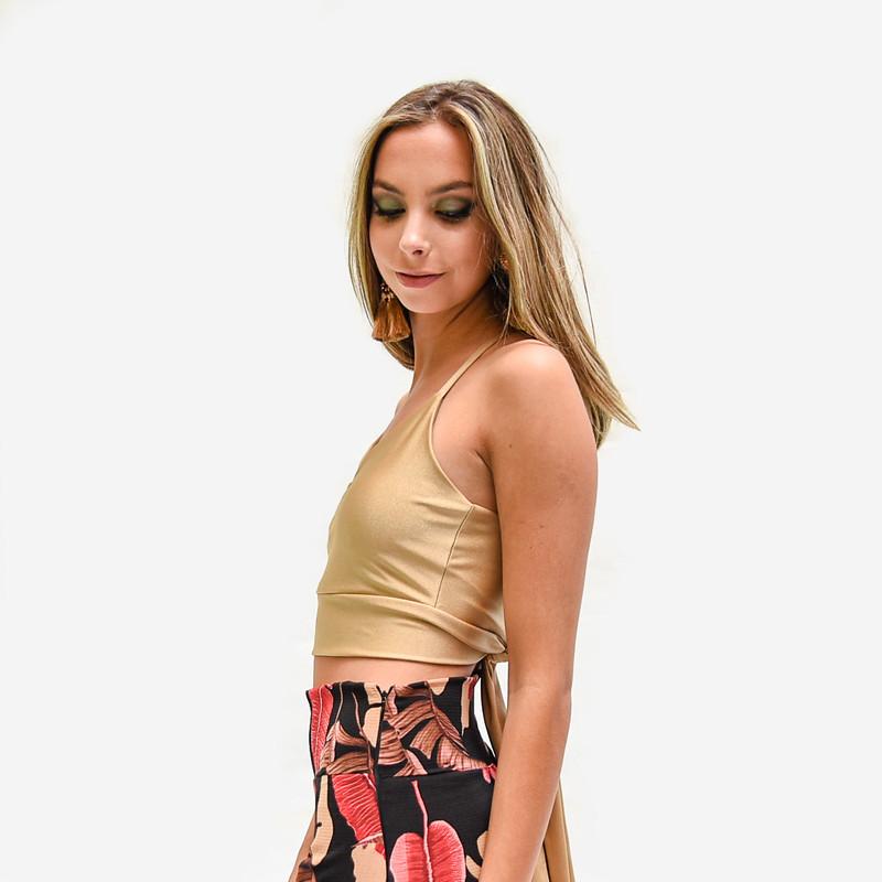 Peto Paris Dorado Plisado Metalizado Con Lazo Espalda Maria Paskaro
