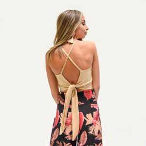 Peto Paris Dorado Lycra Dupont Con Lazo Espalda Maria Paskaro