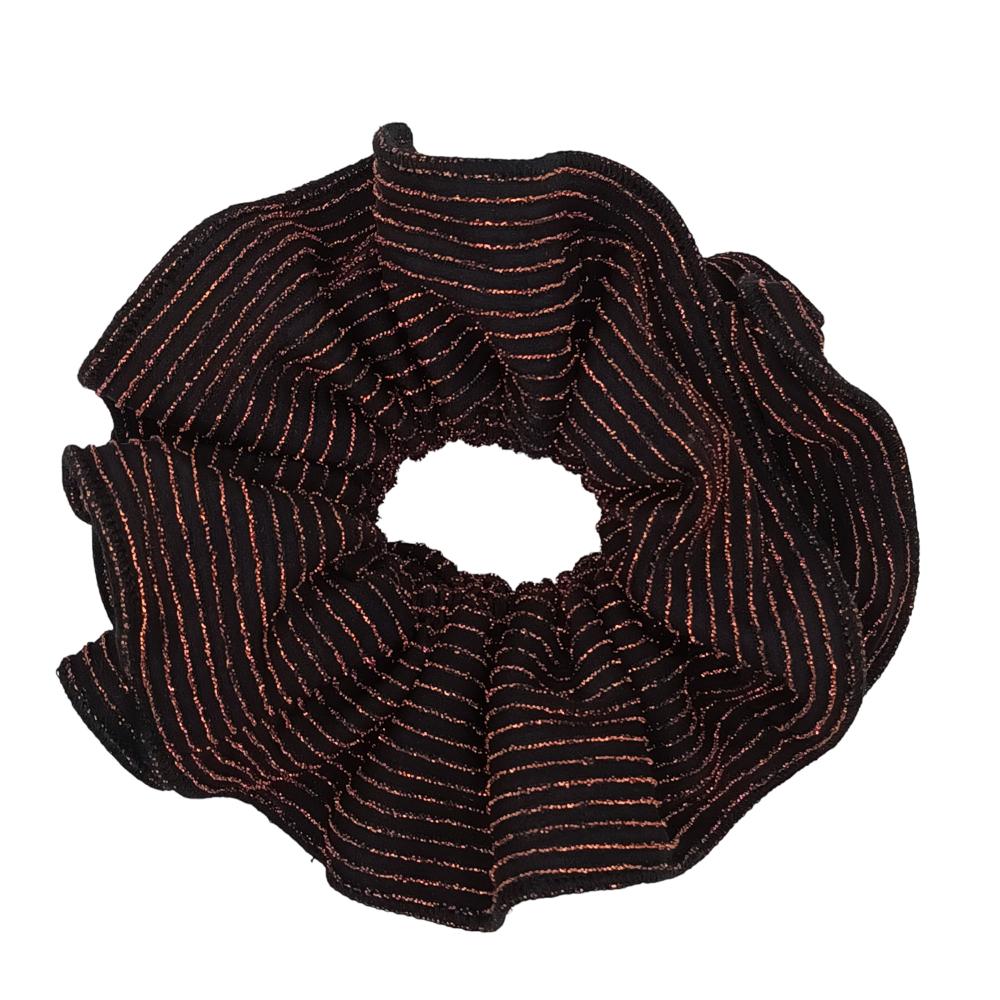 Scrunchie Camelia L Negro Lineas Cobre Maria Paskaro