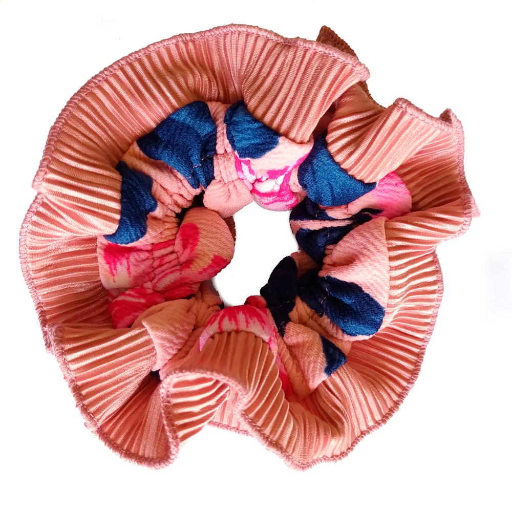 Scrunchie Collet Begonia M Rosado Flores Azul Maria Paskaro