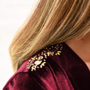 Tapado Kimono Largo Verona Burdeo Terciopelo Bordado Maria Paskaro
