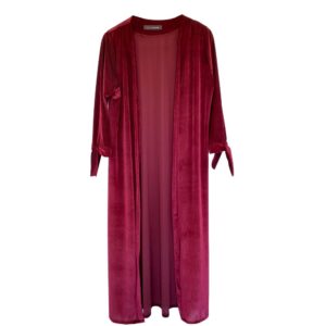 Tapado Kimono Largo Verona Burdeo Terciopelo Lineas Maria Paskaro