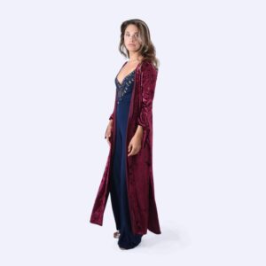 Tapado Kimono Largo Verona Cherry Jaspeado Terciopelo Maria Paskaro