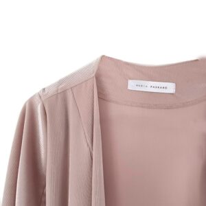 • Cuidado de la Prenda: Lavar a mano con precaución. Secar en posición horizontal sobre una superficie plana.