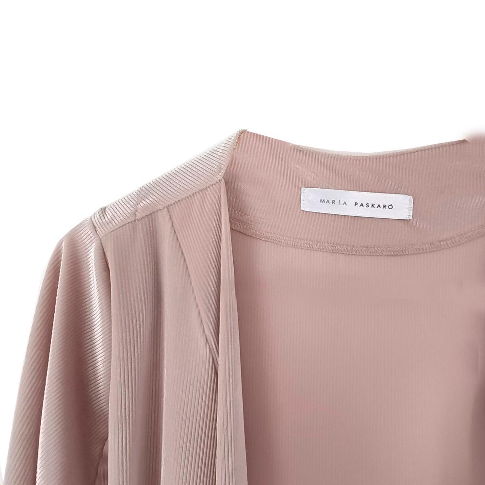 Tapado Kimono Largo Verona Crudo Terciopelo Lineas Maria Paskaro