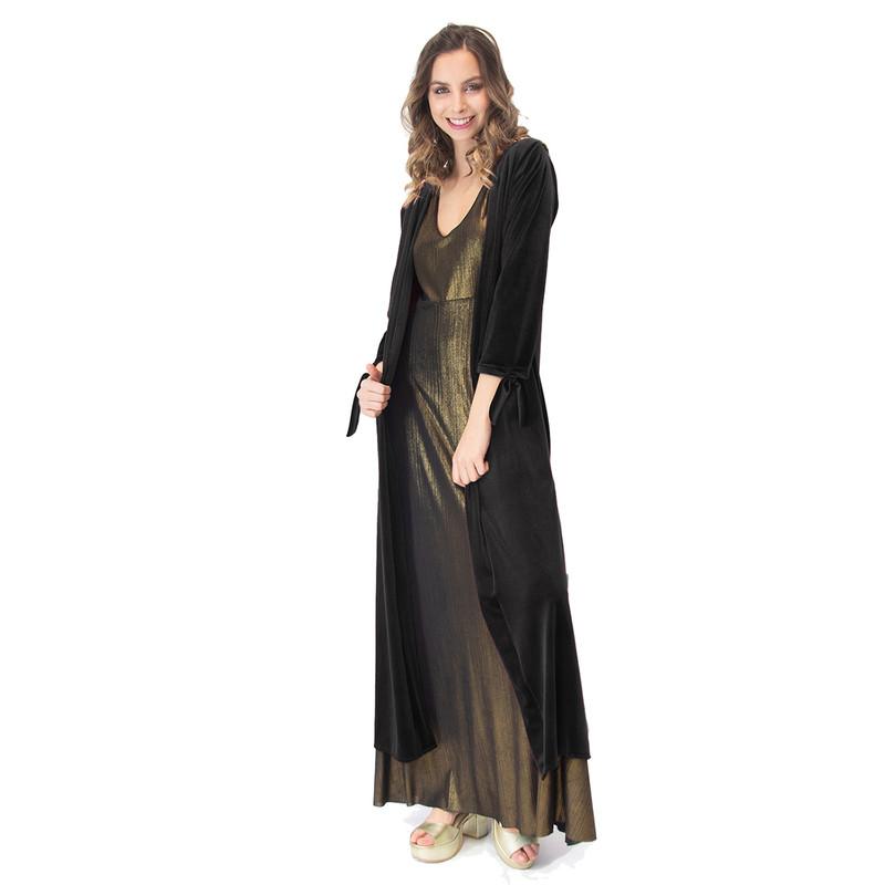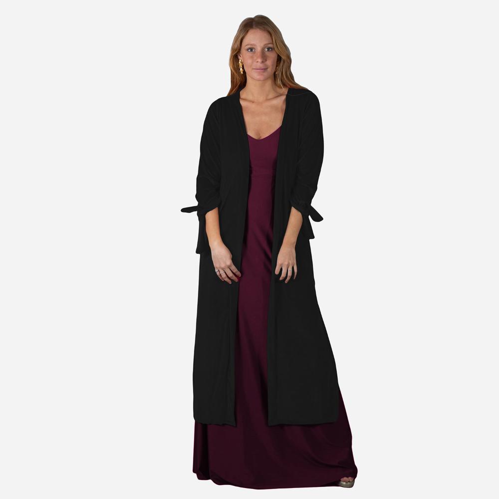 Tapado Kimono Largo Verona Negro Terciopelo Maria Paskaro