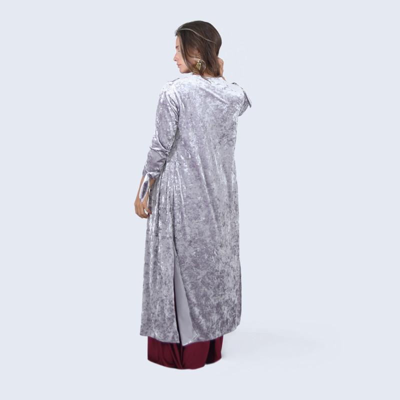 Tapado Kimono Largo Verona Plata Lineas Terciopelo Maria Paskaro