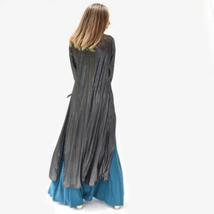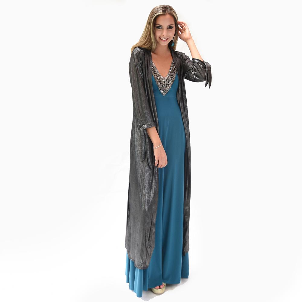 Tapado Kimono Largo Verona Plateado Lineas Metalizado Maria Paskaro