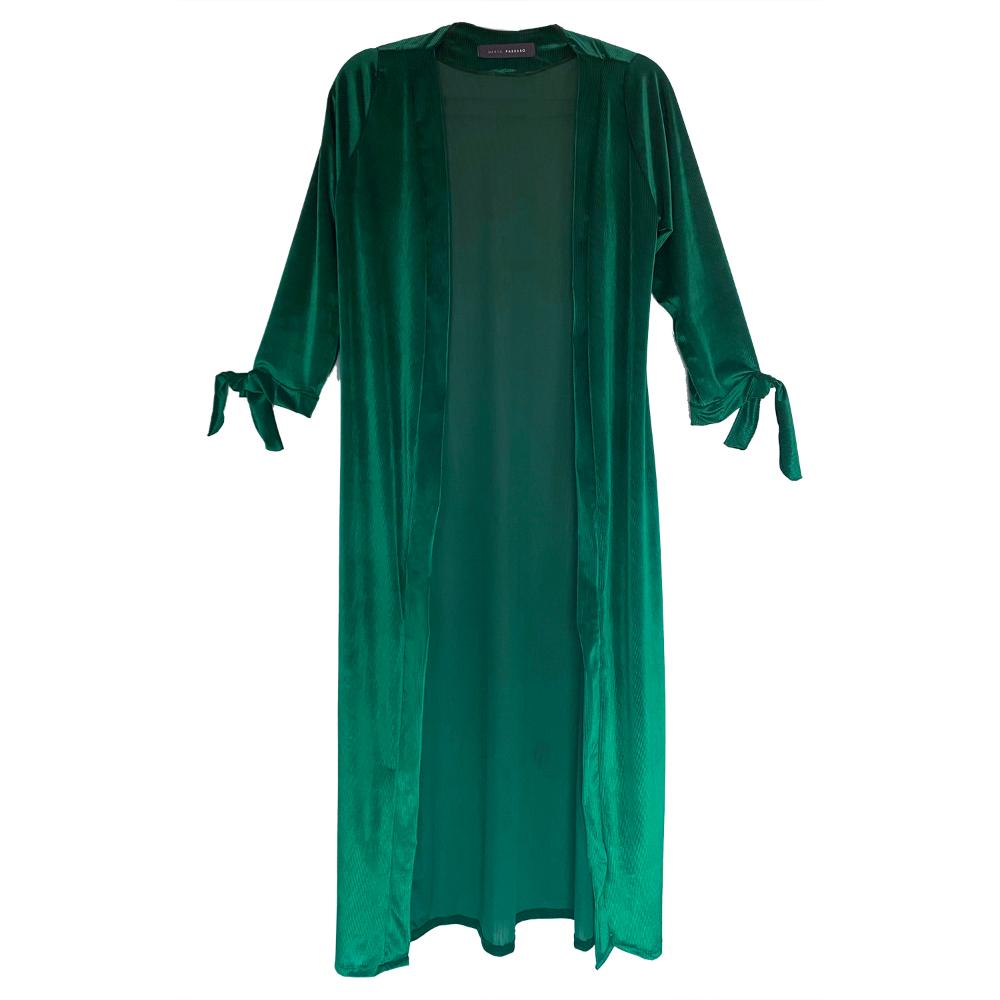 Tapado Kimono Largo Verona Verde Botella Lineas Terciopelo Maria Paskaro