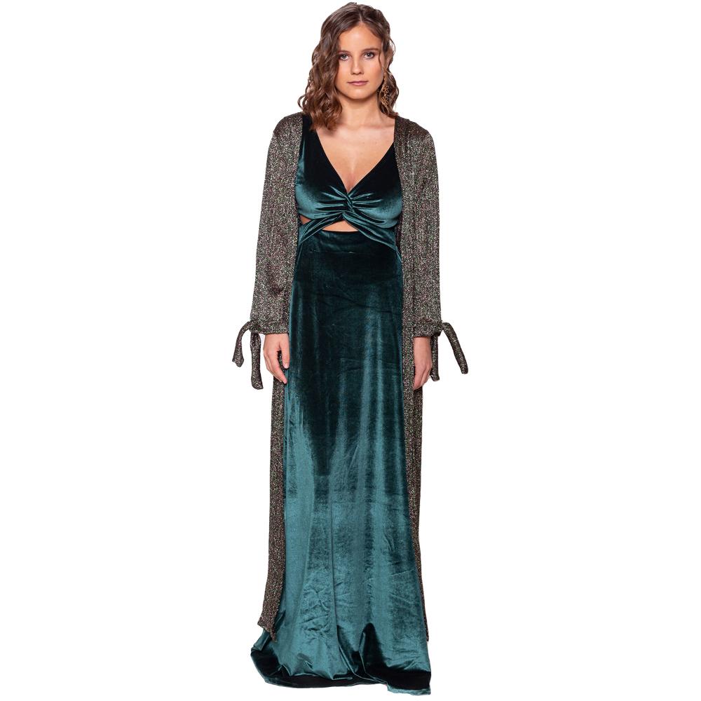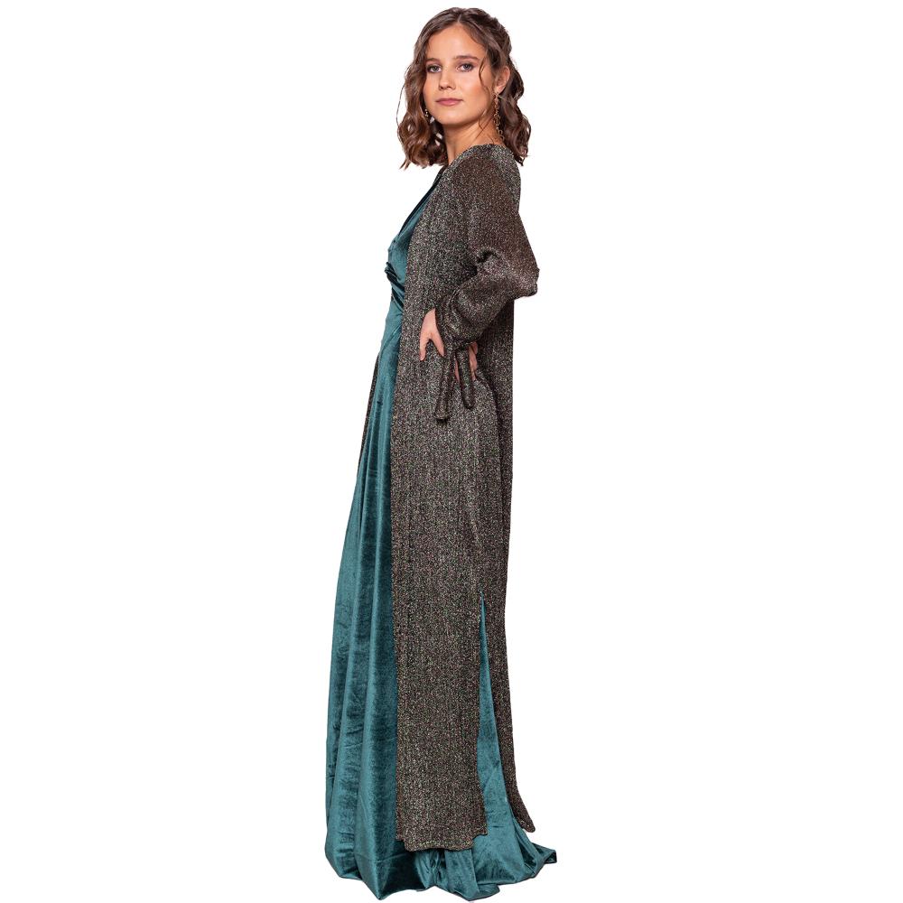 Tapado Kimono Largo Verona Verde Multicolor Shine Transparente Maria Paskaro