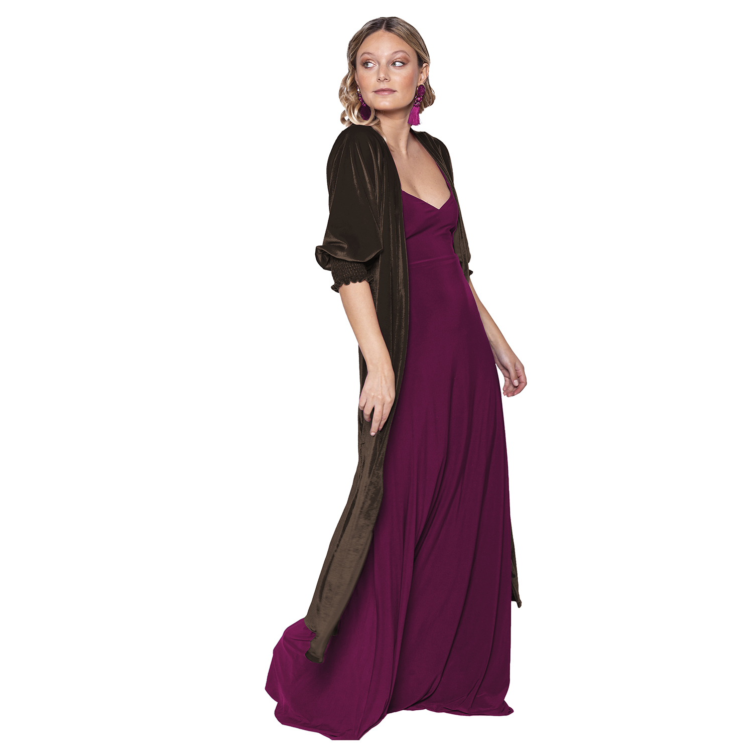Tapado Kimono Santini Chocolate Terciopelo Maria Paskaro