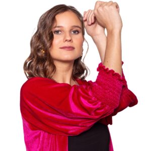 - Cuidado de la Prenda: Lavar a mano con precaución. Secar en posición horizontal sobre una superficie plana.