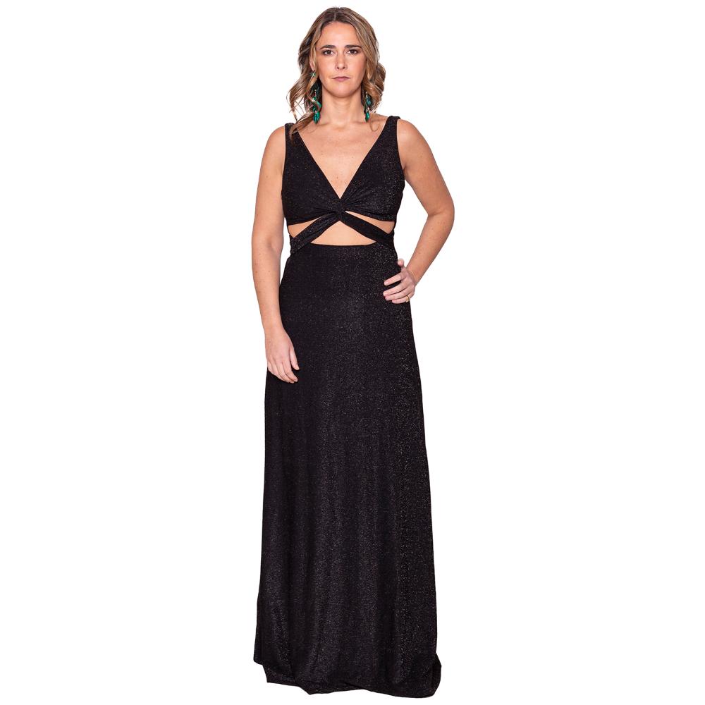 Vestido Largo Algarve Negro Brillo Maria Paskaro