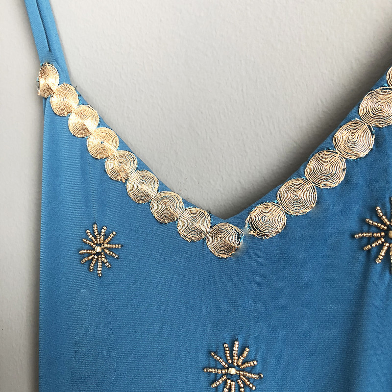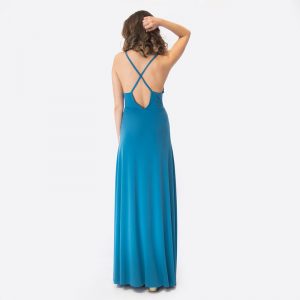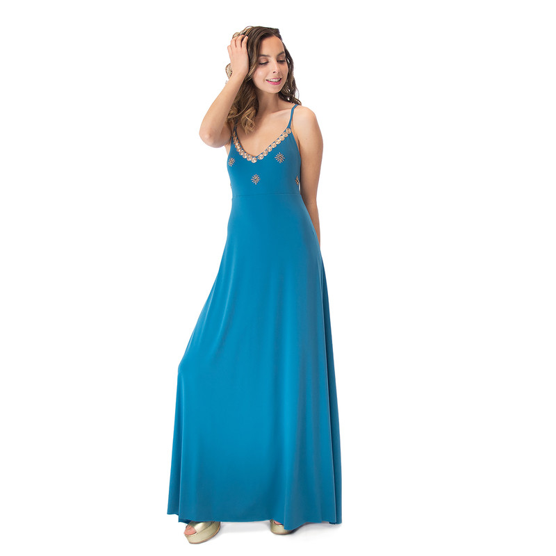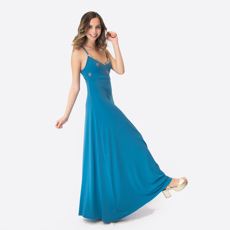 Vestido Largo Berlin Turquesa Lycra Bordado A a Mano Maria Paskaro