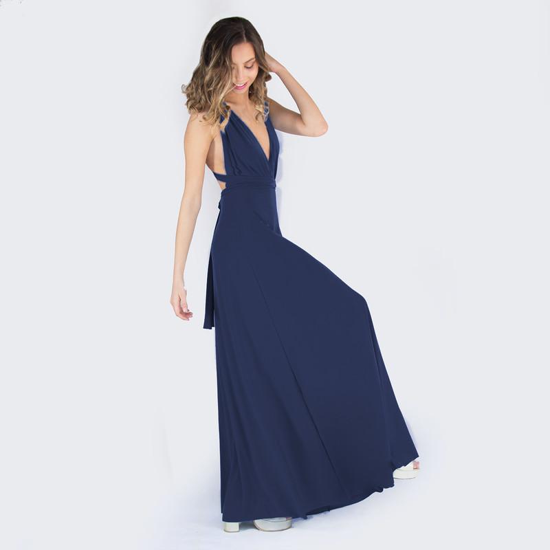 Vestido Largo Dakar Marino Lycra Multiforma Maria Paskaro