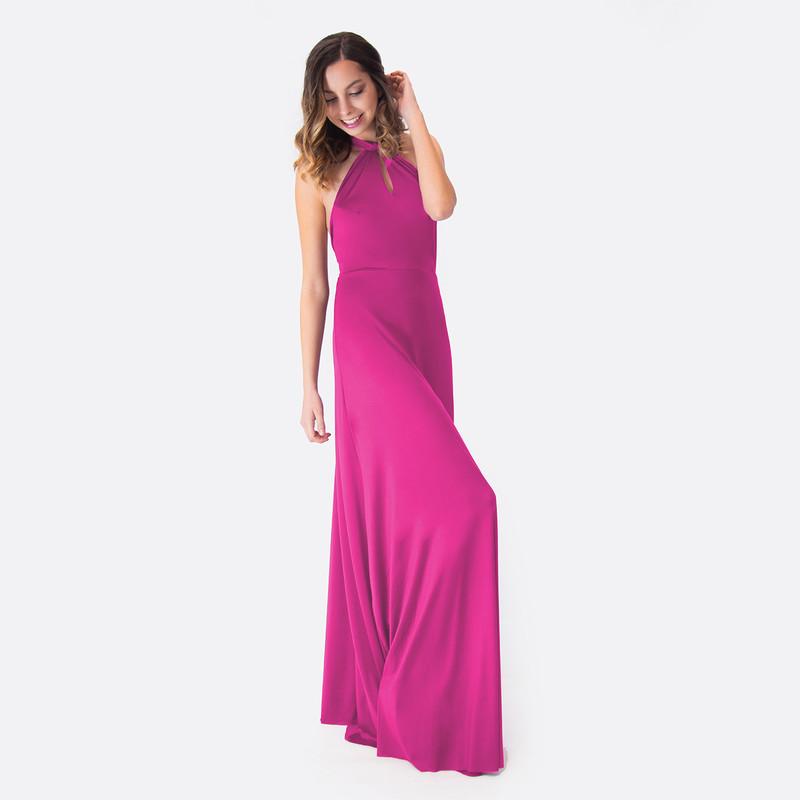 Vestido Largo Oporto Fucsia Lycra Halter Amarra Maria Paskaro