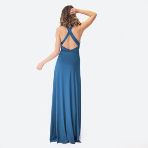 Vestido Largo Oporto Turquesa Lycra Halter Amarra Maria Paskaro