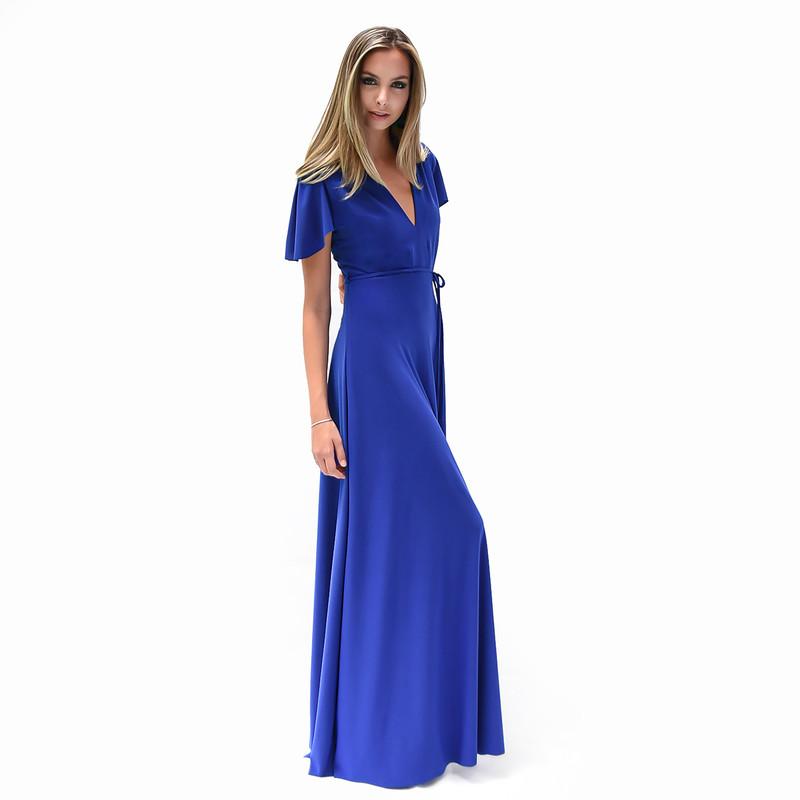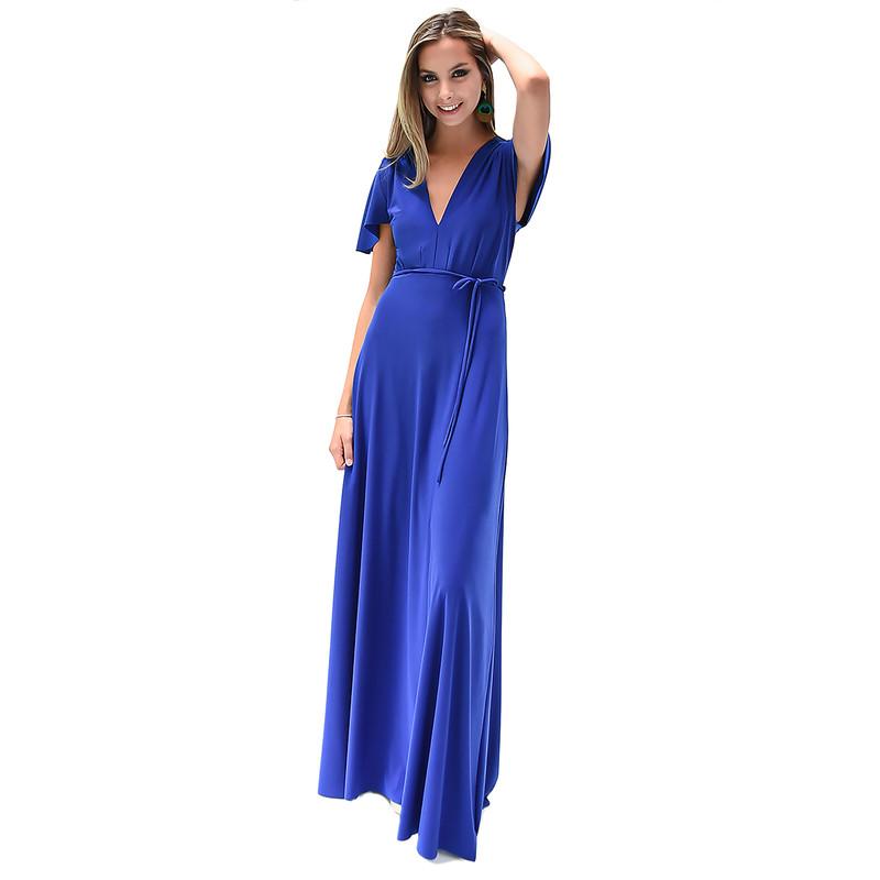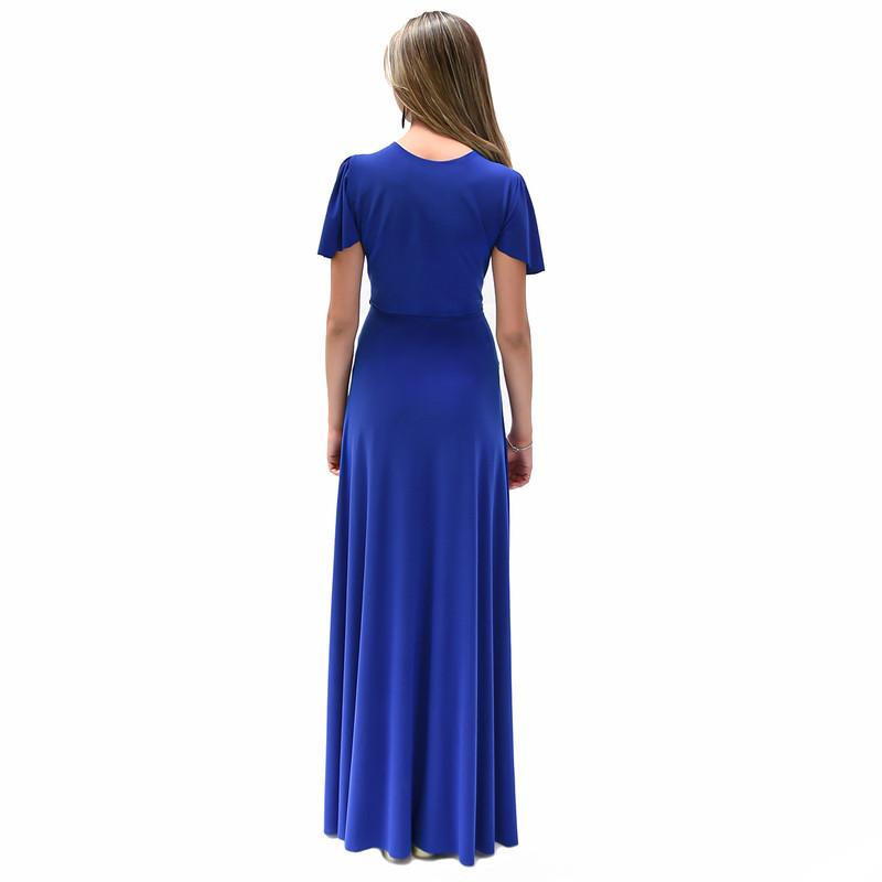Vestido Largo York Azulino Lycra Mangas Maria Paskaro